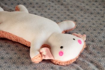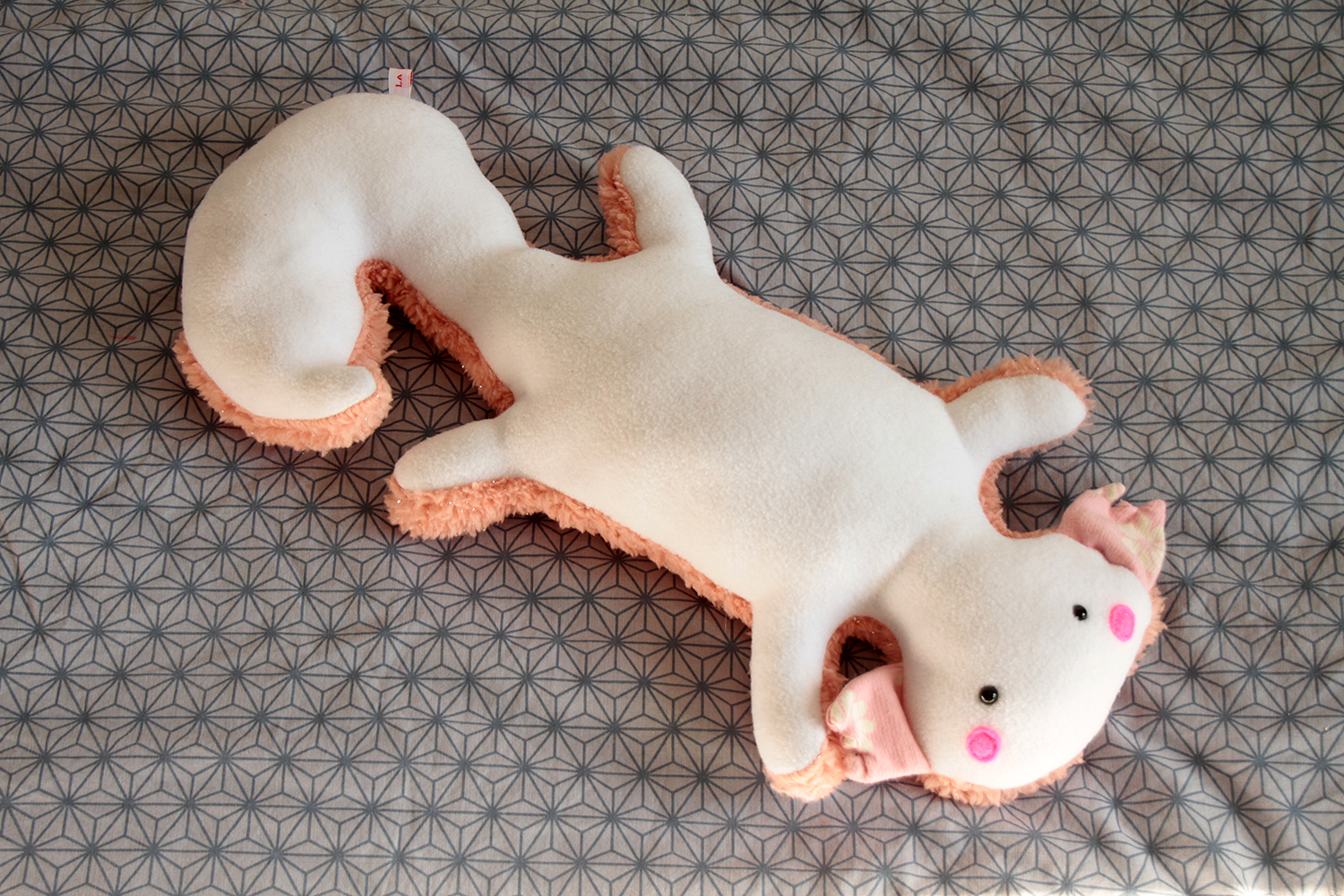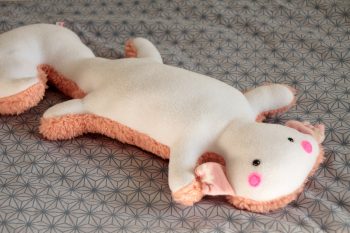 Peluche tout douce rembourrée en polaire qui représente un axolotl, le fameux petit animal tout mignon d’Amérique du Sud.