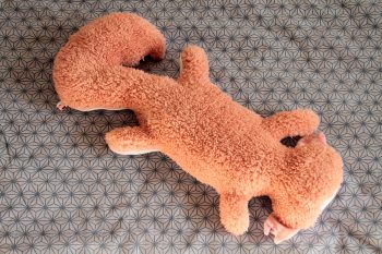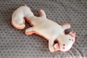 Les branchies sont en polaire, les joues en feutrine et les yeux sont des yeux de sécurité en plastique.