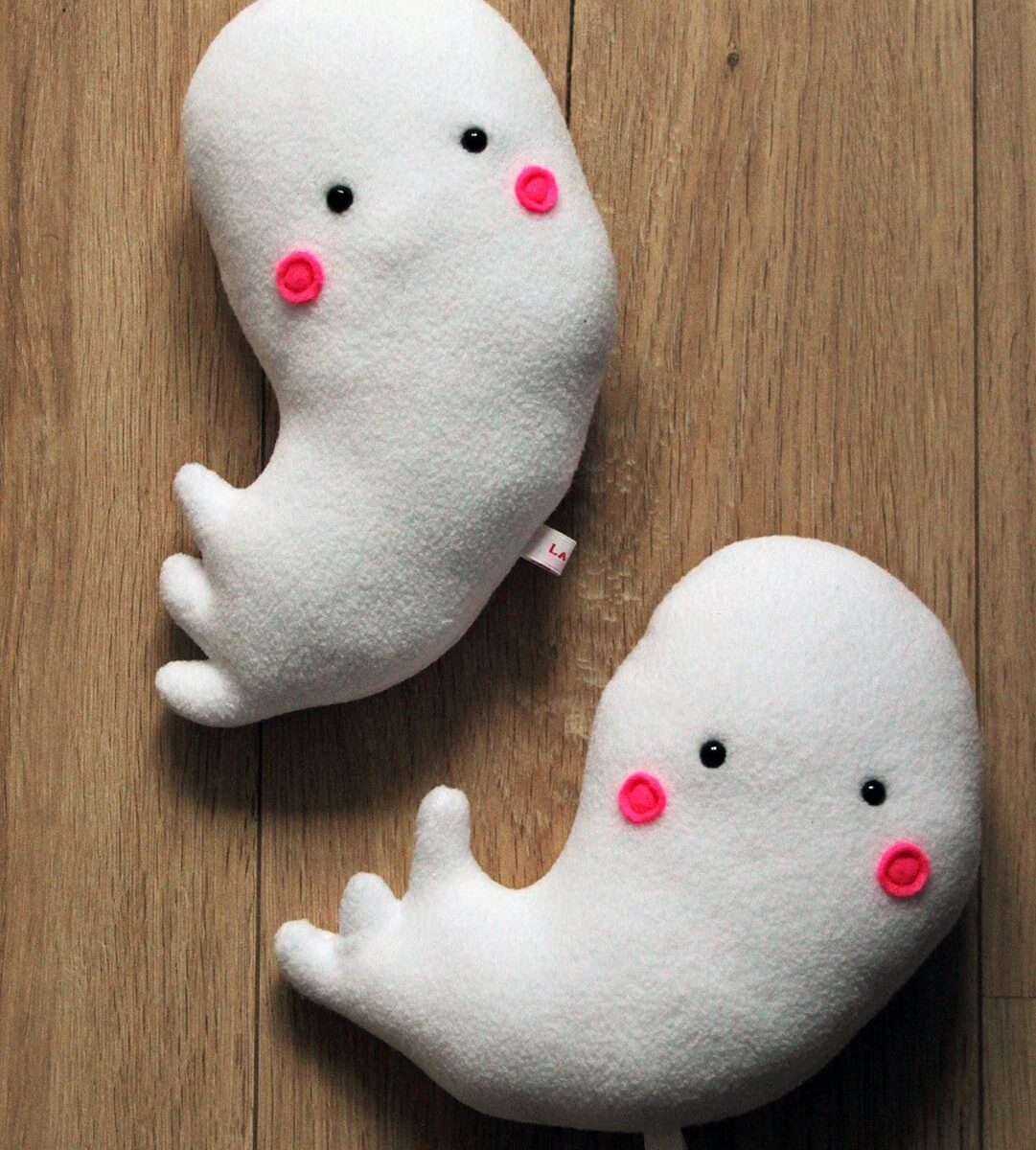 Peluche tout douce rembourrée en polaire blanche qui représente un fantôme.