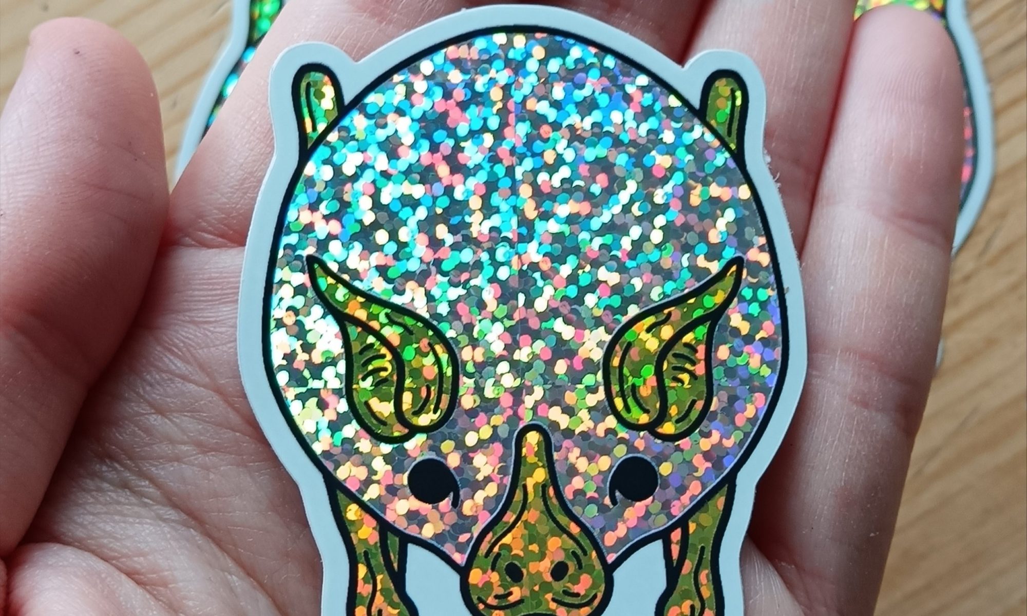 sticker glitter white bat