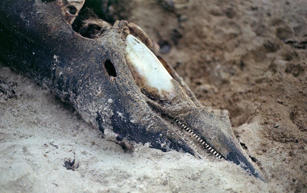 Un squelette de baleine de cuvier (Ziphius cavirostris) qui s’est échouée sur cette plage dans les années 60.