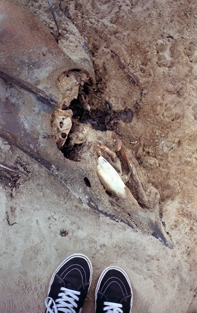 Les restes d’un grand cétacé sont visibles sur cette plage (principalement des fragments du crâne). D’après la taille il s’agit probablement d’une baleine bleu (Balænoptera musculus) mais je ne trouve pas d’informations sur le sujet.