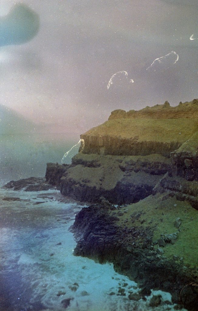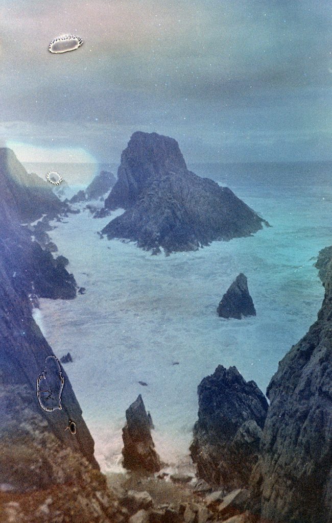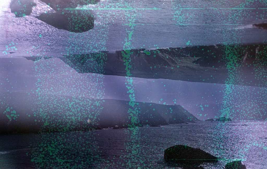 Dans cette série, les expérimentations chimiques sur pellicule se mêlent aux paysages du nord du globe. Les déformations apparaissant sur la cellulose traduisent mon éco-anxiété et la transformation dangereuse de ces régions par l’accélération du réchauffement climatique, résultant de l’activité humaine.